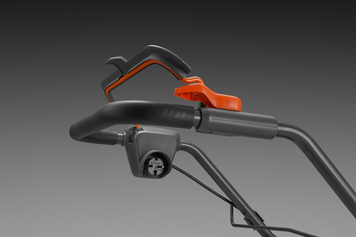 Unghiul ergonomic al mânerului de ghidare permite accesul rapid la maneta de funcționare, pentru utilizare uşoară şi confortabilă.