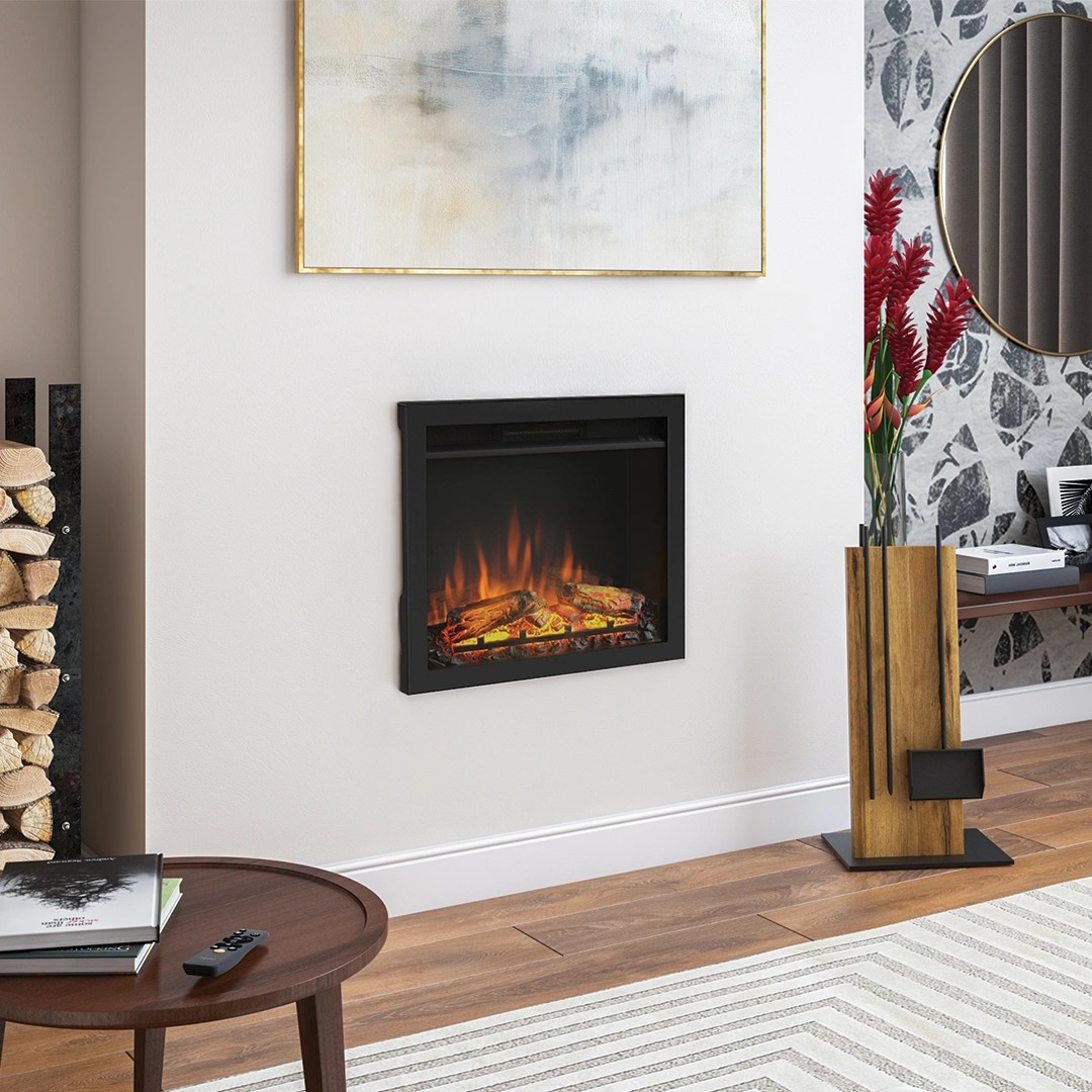 Set Focar electric PowerFlame și Kitul de instalare 23RK1 iți permite să încorporezi focarul electric Powerflame 23PF1 în pereți de rigips, seminee existente din piatră sau construcții permanente, când e nevoie să îl instalezi din față. Focarul folosește un ecran electric cu tehnologie LED, cu flacără decorativă și bușteni iluminați, având un consum de energie foarte redus, mai mic decât al unui bec obișnuit atunci când este folosit fără funcția de încălzire.