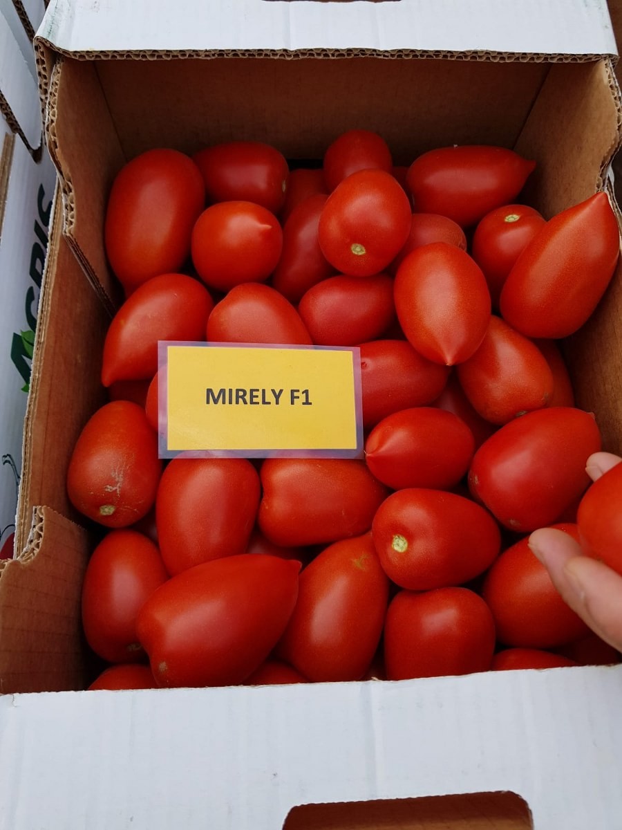 Semințe Tomate MIRELY F1, hibrid de tomate prunișoară cu creștere nedeterminată, cu mucron accentuat, recomandate pentru cultivare în spații protejate și câmp.