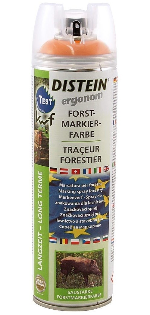 Vopsea Distein Ergonom de durata, conceputa special pentru marcare forestiera. Datorita formei ergonomice speciale a duzei de pulverizare, varianta Ergonom permite o pulverizare precisa si curata.