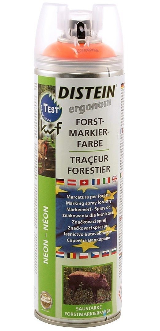 Vopsea Distein NEON, conceputa special pentru marcare forestiera. Datorita formei ergonomice speciale a duzei de pulverizare, varianta Ergonom permite o pulverizare precisa si curata.